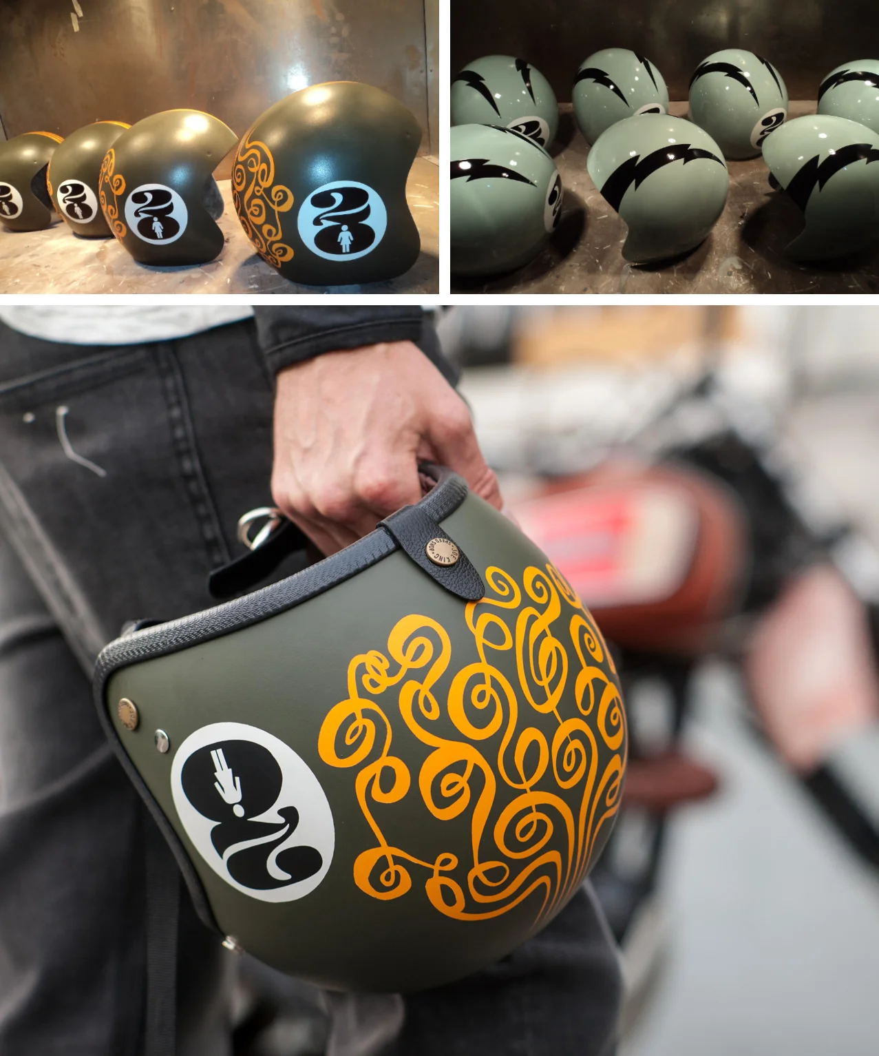 Custom painted, limited-edition motorcycle helmets for Joe King artisanal motorcycle helmets, Sao Paulo, Brazil. Part of a brand partnership with Girl Skateboard's 20th anniversary celebration.