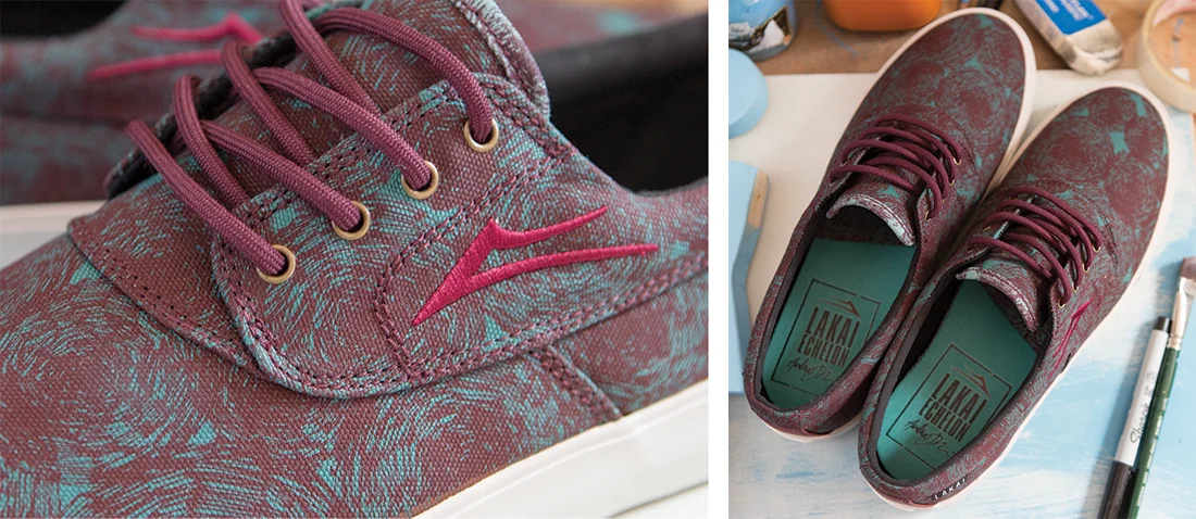 The Lakai Footwear Echelon line features a collaboration with an artist once a year. In 2015, Jenkins designed three different shoe models for the project and painted a custom mural at The Banks, a skateboarding & street style boutique in Los Angeles.