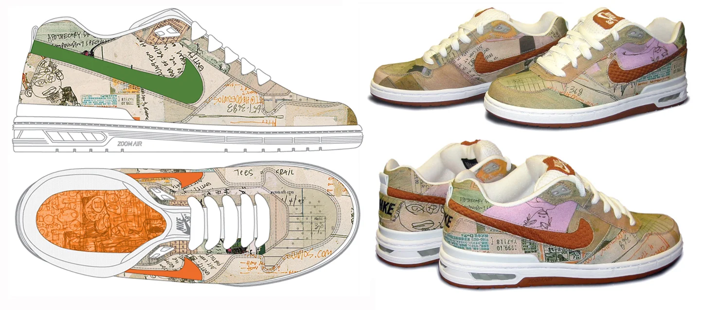 Featured shoe design for the release of the Nike SB pro, Paul Rodriguez's model. The shoe was a limited edition and is now a coveted collector's item with pairs selling for as high as $1,000.