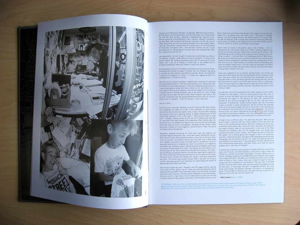 The book project "Freestylin'; Generation F", was published by Nike in conjunction with the 2008 Beijing Olympic introduction of BMX racing. The publication features the entire history of the seminal BMX magazine, Freestylin', through archival photos, graphics and current interviews with some of the sport's legends. The book was created by the original magazine staffers, Jenkins, Mark Lewman and Spike Jonze, all three of whom started their professional careers at Freestylin'.